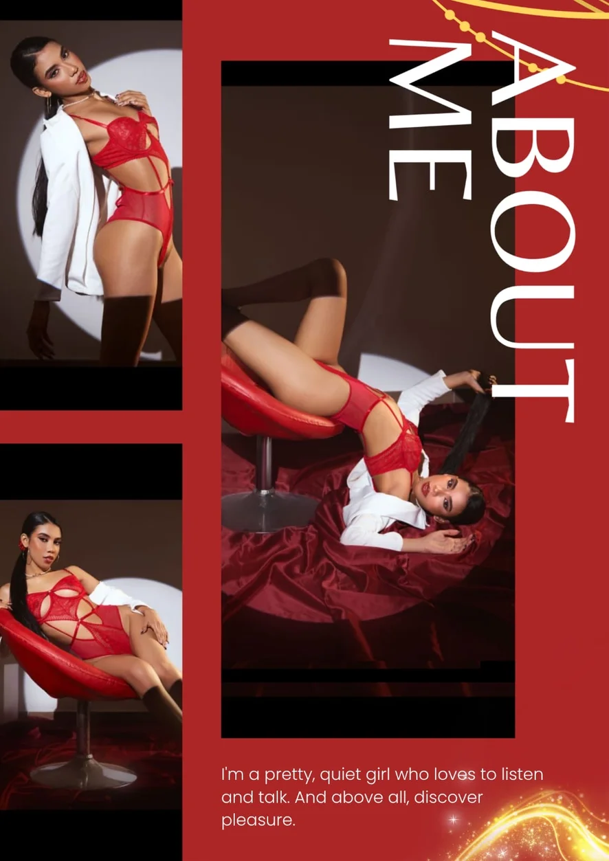 아헤가오, 스팽킹, 카멜토우, 마사지, 트월킹, 치마속, 상의탈의, 하이힐, 도기 스타일, 에로틱 댄스, 핑거링, 딜도 또는 바이브레이터, 스트립쇼, 풋 페티시, 플래싱, 딥스로트, 자위행위 지침, 섹스 기구, 블로우잡, 자위, 오일 쇼, 젖소, 가죽, 더블 페네트레이션, 오르가즘, 풋잡, 하드코어, 분수, 자지 평점, 애널, 피스팅, 애널 기구, 재갈